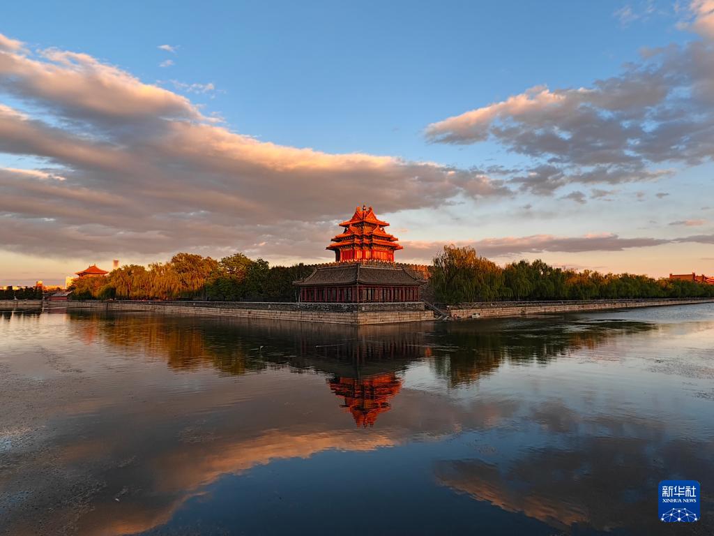 4月27日,暮色中的故宫角楼景色如画,引人入胜。