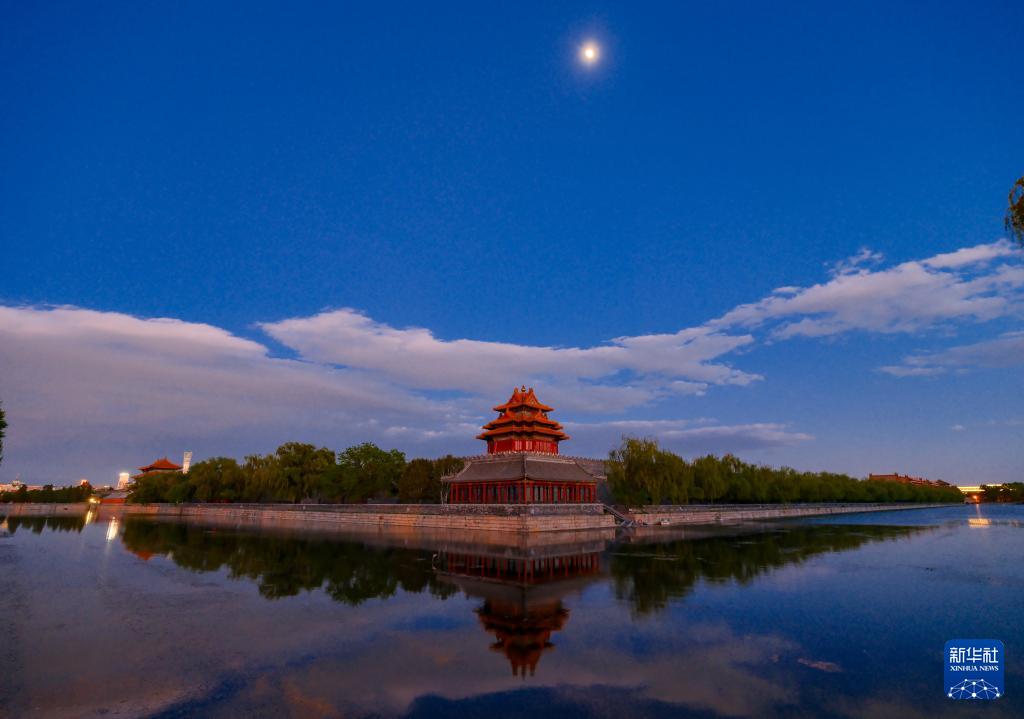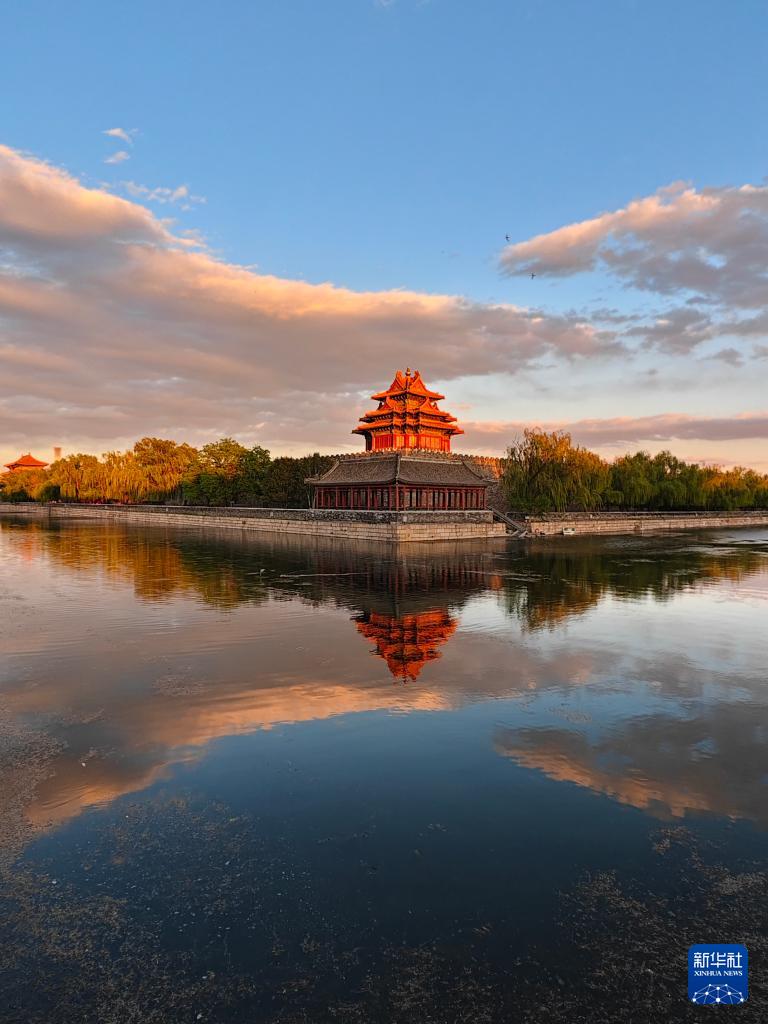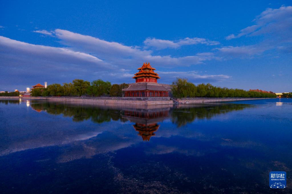 这是4月27日拍摄的傍晚时分的故宫角楼。 4月27日,暮色中的故宫角楼景色如画,引人入胜。 新华社记者 陈晔华 摄