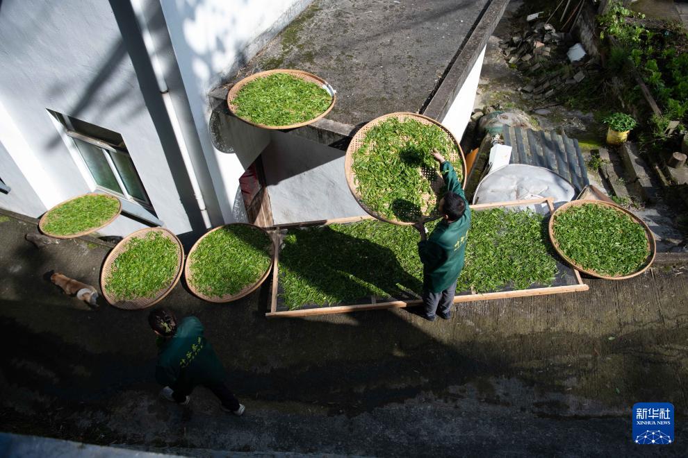 4月25日,在黄山市黄山区新明乡猴坑村中潭村民组,茶农叶鑫建(右)在查看鲜叶的摊放程度。 4月16日,中国十大名茶之一的太平猴魁在安徽省黄山市黄山区新明乡全面开园采摘。作为太平猴魁的核心产区,新明乡猴坑村的高山茶园正值最繁忙的时节。 中潭村民组位于猴坑村东部,村落临水。当地茶农及其招收的采茶工需先乘船抵达码头,再乘车前往山脚,最后徒步爬山,方能抵达高山茶园,采摘太平猴魁鲜叶。山高林密、晨雾氤氲,采茶人将竹篓斜挎肩头,指尖在茶枝间轻快“跳跃”,忙碌的身影点缀在茶丛中,勾勒出一幅灵动的画卷。 据介绍,2025年,黄山区茶叶总产量1722.8吨,一产产值7.2亿元,综合产值39亿元。如今,在猴坑村中潭村民组,家家户户的日子伴着悠悠茶香,越过越红火。 新华社记者 张端 摄 |