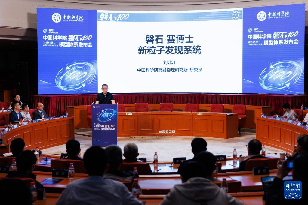4月28日,在发布会现场,中国科学院高能物理研究所刘北江研究员发布“磐石·赛博士”大模型。