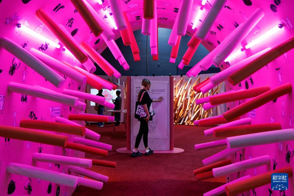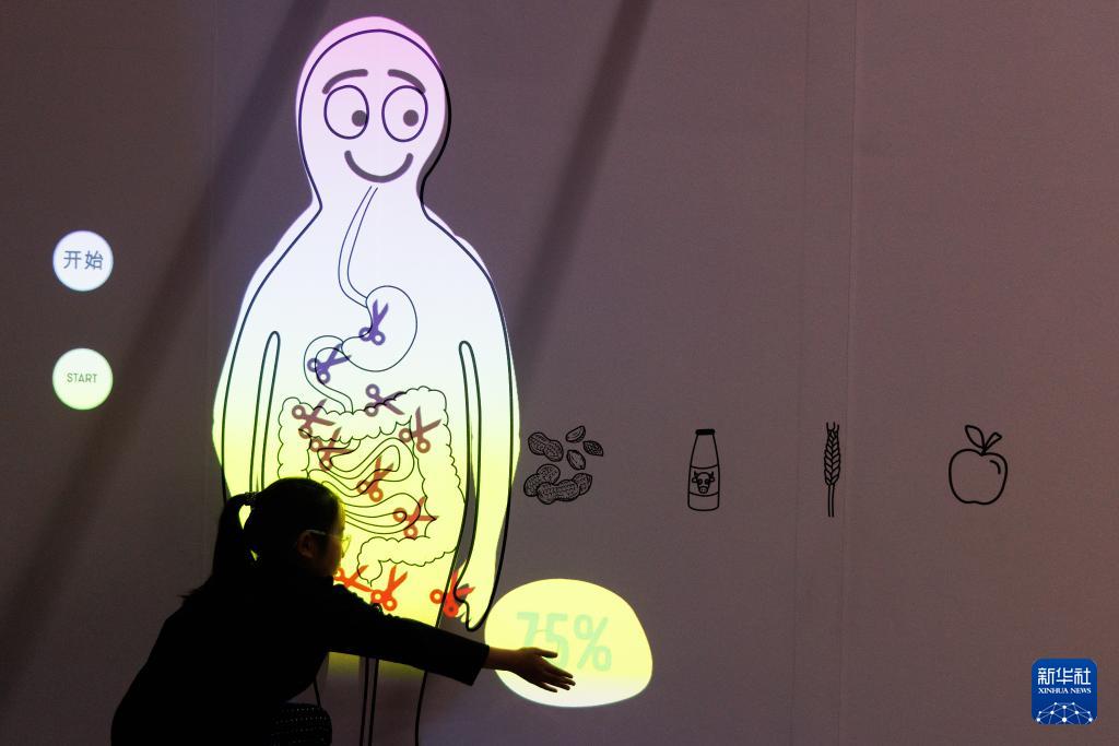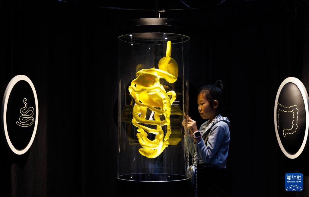 4月28日,参观者在展览现场观展,了解肠道健康知识。 4月28日,由法国国家科学技术总馆出品的科普互动体验展《肠子的小心思——肠道的奇妙冒险》在中国科学技术馆开幕。该展览为公众带来一场别开生面的肠道健康科普盛宴,将展出至8月16日。 新华社记者 金立旺 摄