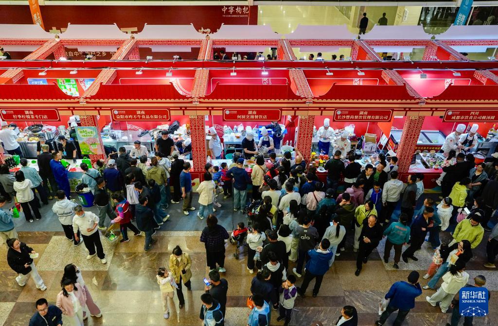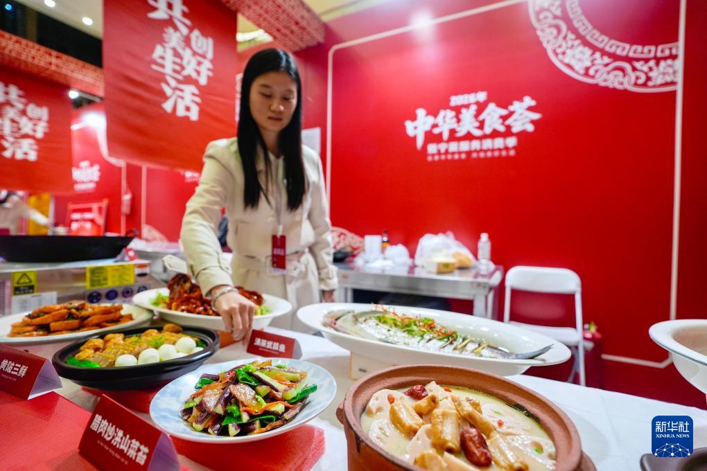 4月28日,在宁夏银川市,来自湖北的参展商在2026年“中华美食荟”活动现场展示菜肴。 4月28日,2026年“中华美食荟”活动在宁夏银川市启动,活动以“乐享中华美食,共创美好生活”为主题,同期举办中华美食市集等系列活动。 新华社记者 杨植森 摄