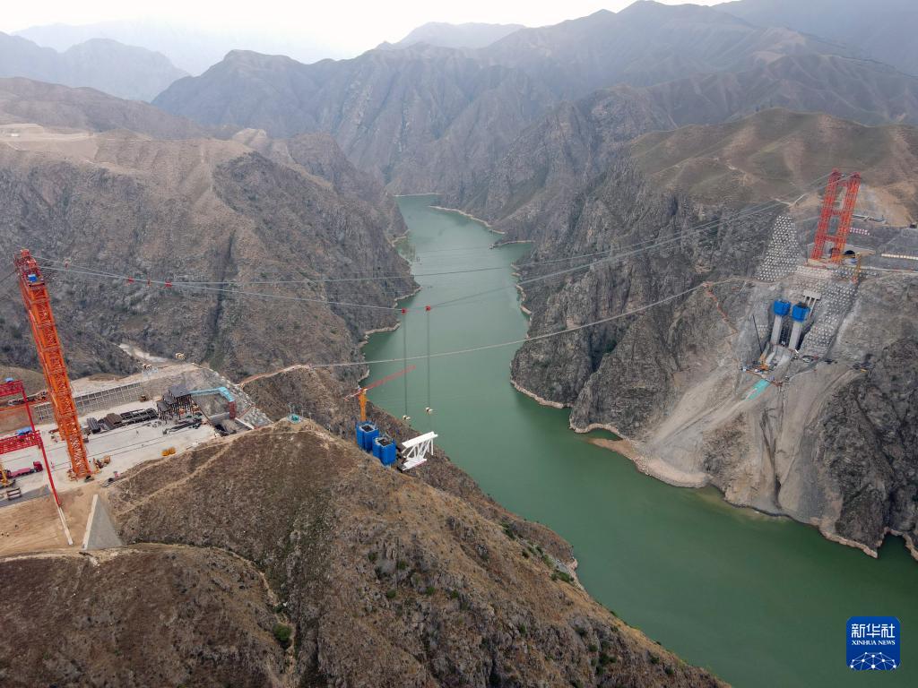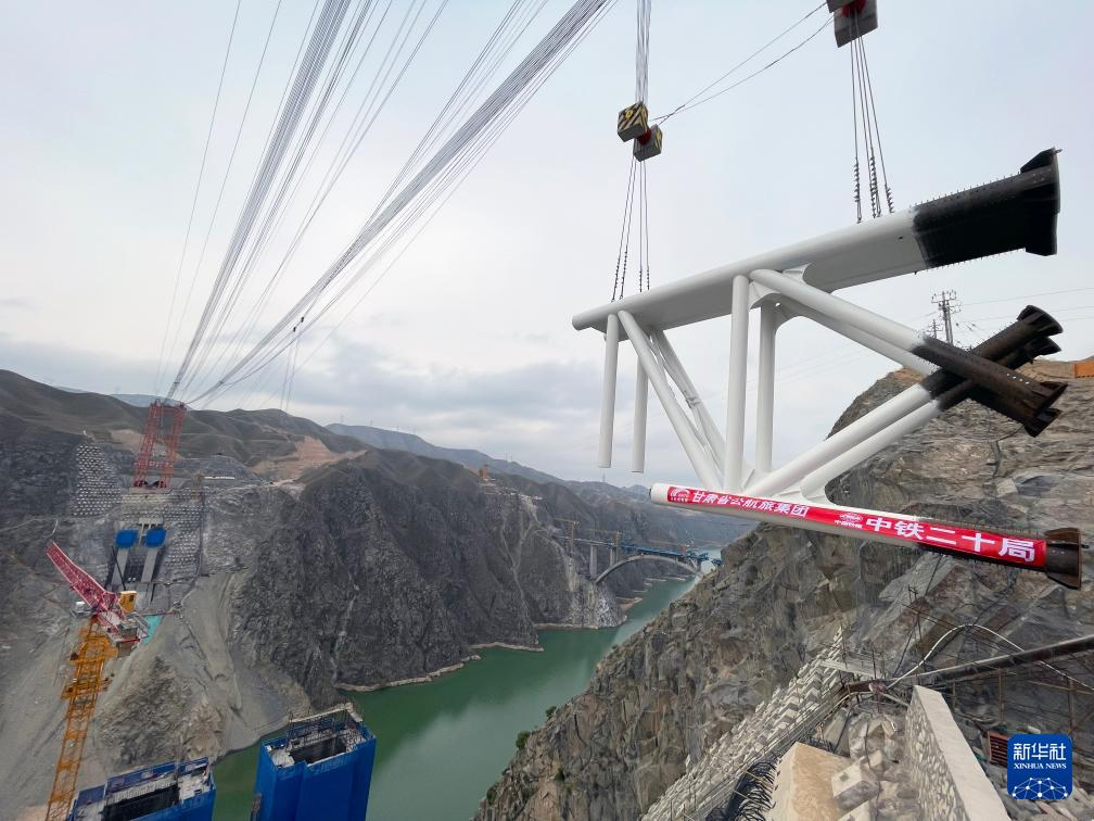 4月28日,兰永临高速公路洮河特大桥214吨钢管拱肋,在500吨级缆索吊装系统加持下,被平稳起吊至洮河上空(无人机照片)。 4月28日6时58分,随着214吨钢管拱肋平稳起吊、精准就位,兰(兰州市)永(永靖县)临(临夏回族自治州)高速公路洮河特大桥主拱吊装工程正式启动。 洮河特大桥横跨位于青藏高原与黄土高原过渡带的洮河峡谷,是兰永临高速公路的咽喉控制性工程。大桥全长562.16米,主桥采用净跨400米上承式钢管混凝土拱桥设计,总用钢量1.5万吨,桥面距河面约170米,施工技术难度较大。项目计划2026年主拱合龙,2027年全线通车。 兰永临高速公路全长131.86公里,总投资238.67亿元,是乌玛高速公路重要组成部分,也是兰西城市群的重点交通项目。 新华社记者 郭刚 摄