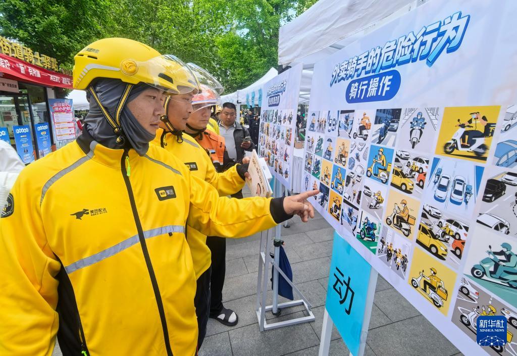4月28日,快递员在参加交通知识竞赛。