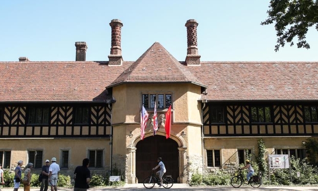 8月17日,游客在位于德国波茨坦的波茨坦会议旧址采西林霍夫宫游览。 新华社记者 单宇琦 摄