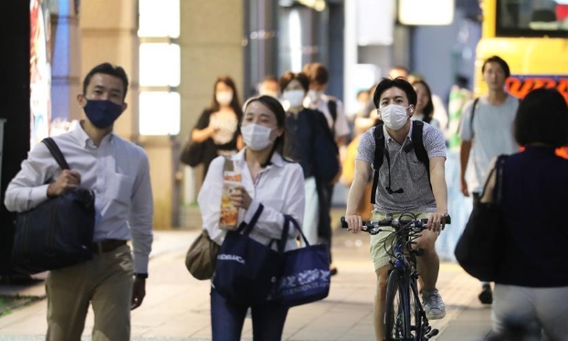 9月2日,在日本东京,人们戴口罩出行。 据日本广播协会电视台统计,截至2日20时(北京时间19时),日本当日新增新冠确诊病例592例,累计确诊病例达69743例。另据日媒2日报道,日前出发前往中东执行任务的日本海上自卫队“村雨”号护卫舰上有一人确诊感染新冠病毒。 新华社记者 杜潇逸 摄