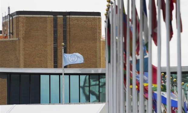 2020年是联合国成立75周年。联合国成立于1945年,位于纽约的联合国总部1952年建成,目前联合国共有193个会员国。 这是2020年9月14日在联合国总部拍摄的联合国旗和会员国国旗。 新华社记者 王迎 摄