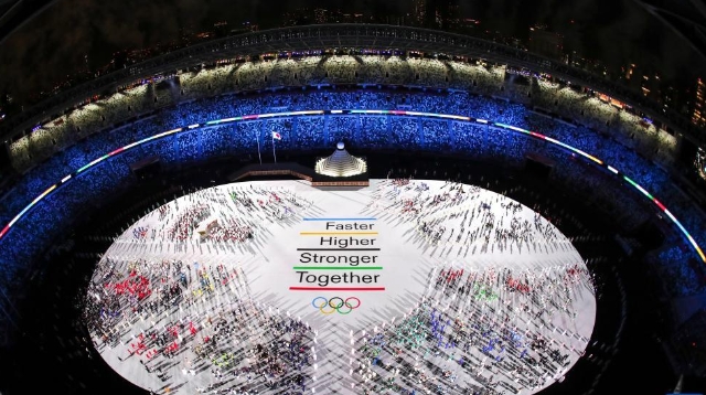 这是2021年7月11日,焦科维奇在2021温布尔登网球锦标赛男子单打颁奖仪式后庆祝。新华社发(蒂姆·爱尔兰摄) 6、延期一年的东京奥运会举行 奥林匹克格言新增“更团结” 因新冠肺炎疫情被推迟一年的第32届夏季奥林匹克运动会于7月23日至8月8日在日本东京举行。美国、中国、日本代表团分列金牌榜前三位。在奥运会开幕前举行的国际奥委会第138次全会表决通过在奥林匹克格言“更快、更高、更强”之后再加入“更团结”。