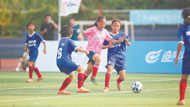 小球员们在比赛中争抢。 中国女足正在厦门参加巴黎奥运会女足亚洲区预选赛,同期,全国性乡村校园女足联赛——第二届“追风联赛”总决赛也在鹭岛上演。10月29日,重庆石柱县三河镇小学女足队夺得本届总决赛冠军。 “想看到大海、想拿冠军,也想成为最佳射手!”来自重庆石柱县的女孩王若蓝在厦门一举实现了自己的三个愿望。决赛中,她所在的重庆石柱县三河镇小学女足队击败了贵州大方县元宝小学,第一次夺得全国冠军。作为前锋的王若蓝也以11粒进球荣膺总决赛“最佳射手”称号。 “追风联赛”由中国青少年发展基金会等单位共同主办,本届联赛吸引了全国60余支“追风计划”乡村校园女足扶持项目支持的球队参赛。经过152场片区赛的争夺,来自云南、江西、新疆等10个省(区、市)的12支乡村校园女子足球队脱颖而出,齐聚鹭岛角逐全国乡村校园女足的最高荣誉。 中国足协副主席孙雯、中国女足名宿王丽平和范运杰也亲临赛场助阵,为孩子们开球和颁奖。参赛选手还前往厦门白鹭体育场观看了中国女足与泰国女足的奥运预选赛。赛后,中国女足队员来到“追风女孩”所在的看台前,用一句“加油!追风女孩”,为孩子们送上鼓励。(记者 施辰静 文/图) |