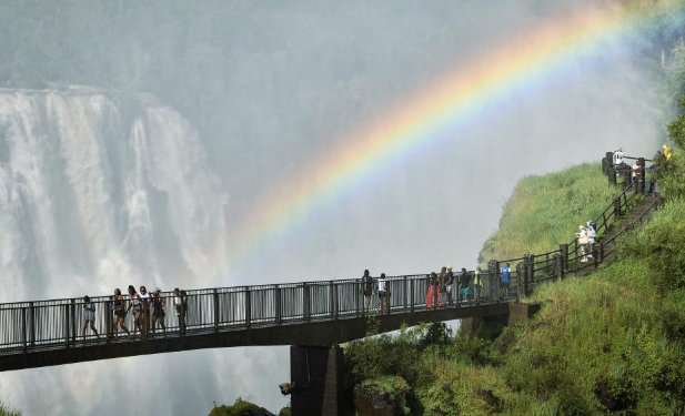 维多利亚瀑布位于津巴布韦和赞比亚交界处,1989年被联合国教科文组织列为世界自然遗产。作为世界上最壮观的瀑布之一,维多利亚瀑布以其宽度和水量著称,气势磅礴,是非洲著名的旅游景点。