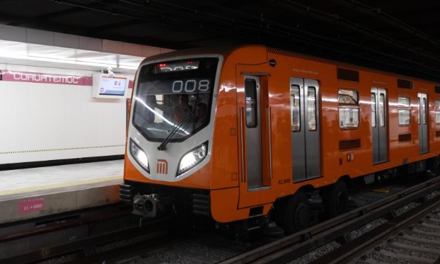 4月23日,在墨西哥首都墨西哥城,地铁新1号线列车驶入库奥特莫克地铁站。