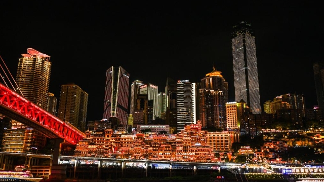 重庆洪崖洞位于嘉陵江边千厮门大桥旁,仿巴渝传统建筑吊脚楼依山而建。每当夜幕降临,洪崖洞依山临水的吊脚楼灯火辉煌,美轮美奂,成为游客打卡、游览的热门景点。