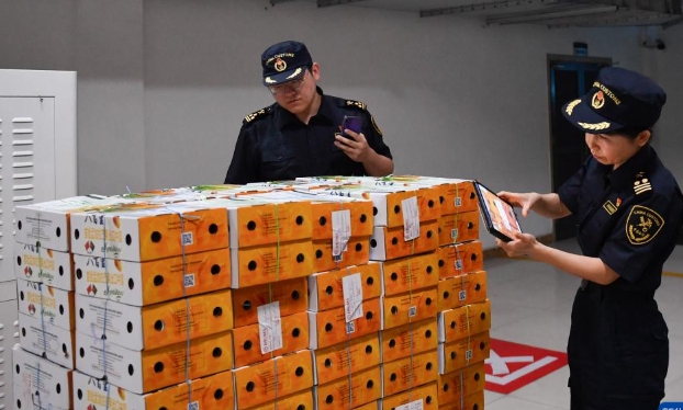 5月28日晚,3吨产自孟加拉国的芒果搭载航班由达卡飞抵长沙黄花机场口岸。在口岸进境水果查验现场,长沙黄花机场海关关员核对了货物标签、植物检疫证书等证单,并对包装和水果外观等实施检疫查验,未发现异常后,该批芒果于当晚通关放行。这是我国首次进口孟加拉国芒果,标志着中孟两国农产品贸易合作取得新突破。