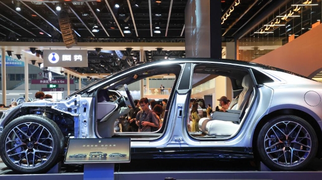 5月31日,观众在比亚迪展馆观展。 当日,2025粤港澳大湾区车展在深圳国际会展中心(宝安)举办。本届车展以“面向科技、面向未来、面向市场”为主题,占地约26万平方米。车展期间,百家汽车品牌将展示千余款新车。 新华社记者 梁旭 摄