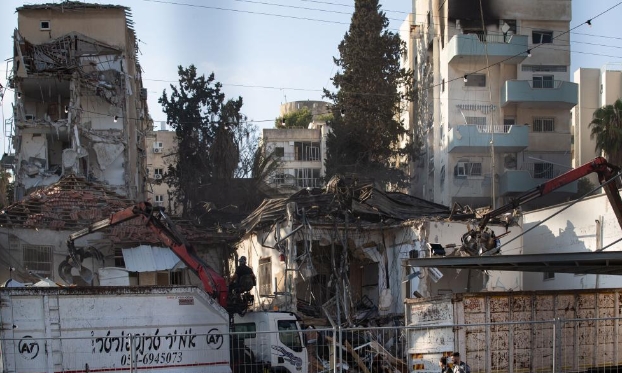 这是6月15日在以色列中部巴特亚姆市拍摄的在导弹袭击中受损的建筑。
