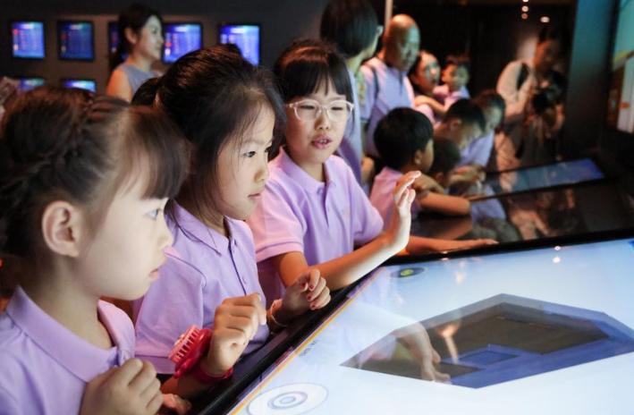 7月8日,参加夏令营的“小候鸟”在深圳中国钢结构博物馆参观。