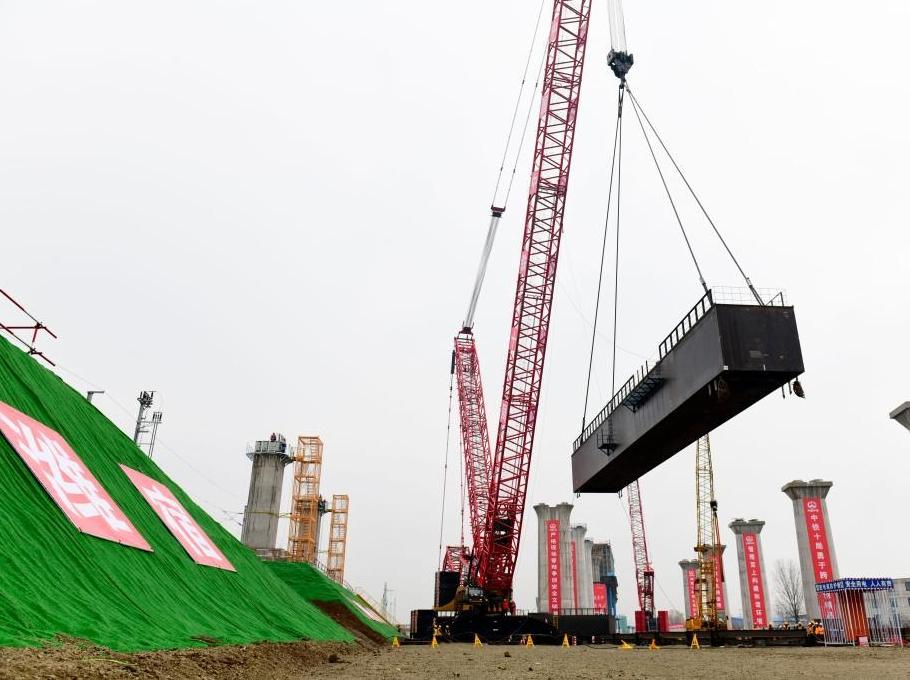 潍宿高铁上跨日兰高铁钢横梁吊装忙