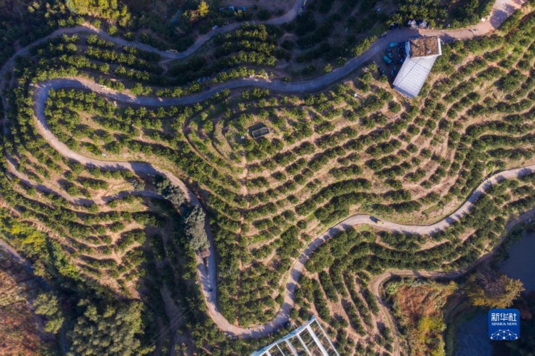 空中俯瞰浙江省丽水市庆元县黄坛村的甜桔柚基地(11月28日摄,无人机照片)。