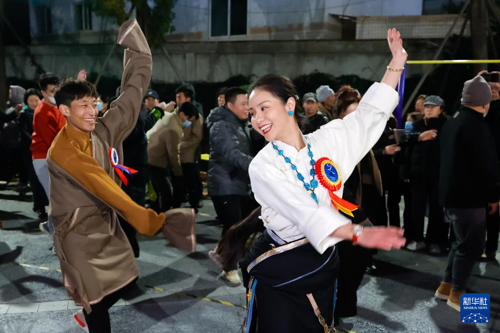 雍吉(前右)和扎西泽仁(前左)在成都锦外中心附近的广场上领跳锅庄(12月16日摄)。 “95后”藏族姑娘雍吉来自四川省阿坝藏族羌族自治州金川县。2014年她离开家乡到成都求学,之后留在成都成为一名幼教老师。她喜爱藏族传统舞蹈“锅庄”,还在社交平台分享自己跳舞的短视频。 2021年,雍吉与来自甘孜藏族自治州石渠县的洛桑日者、来自甘孜州德格县的扎西泽仁一起组建了“卓热查姆锅庄团队”(藏语“卓热查姆”意为“欢乐与壮观的舞场”)。他们凑钱买了灯和音响,在成都锦外中心旁的小广场欢乐起舞。 经过互联网传播和口口相传,他们的舞团活动吸引了越来越多的人,最热闹时有近千名各族群众参与,大家一起享受舞蹈和音乐带来的快乐。有不少“粉丝”专门从北京、上海等地,甚至从外国远道而来看他们表演。 “锅庄舞是国家级非物质文化遗产,我们希望大家能从中感受到藏族同胞的热情和藏族文化的魅力。”雍吉说。她还希望,能够将锅庄这种展现少数民族文化特点的舞蹈融入到自己的幼教工作中。 新华社记者 沈伯韩 摄