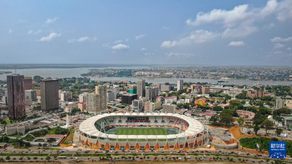 这是1月9日在科特迪瓦阿比让拍摄的费利克斯·乌弗埃-博瓦尼体育场(前)和城市景观(无人机照片)。 科特迪瓦阿比让属热带雨林气候,植被葱郁,风光秀丽。阿比让是该国的最大都市和经济首都,也是西非地区的良港和交通枢纽。 新华社记者 韩旭 摄