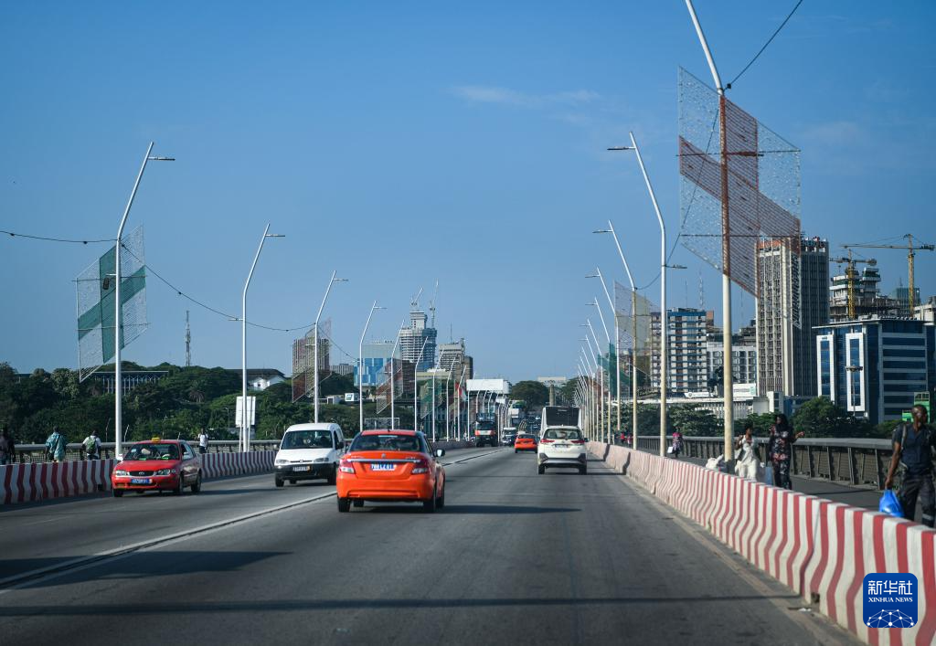 1月10日,汽车行驶在科特迪瓦阿比让的费利克斯·乌弗埃-博瓦尼桥上。 科特迪瓦阿比让属热带雨林气候,植被葱郁,风光秀丽。阿比让是该国的最大都市和经济首都,也是西非地区的良港和交通枢纽。 新华社记者 韩旭 摄