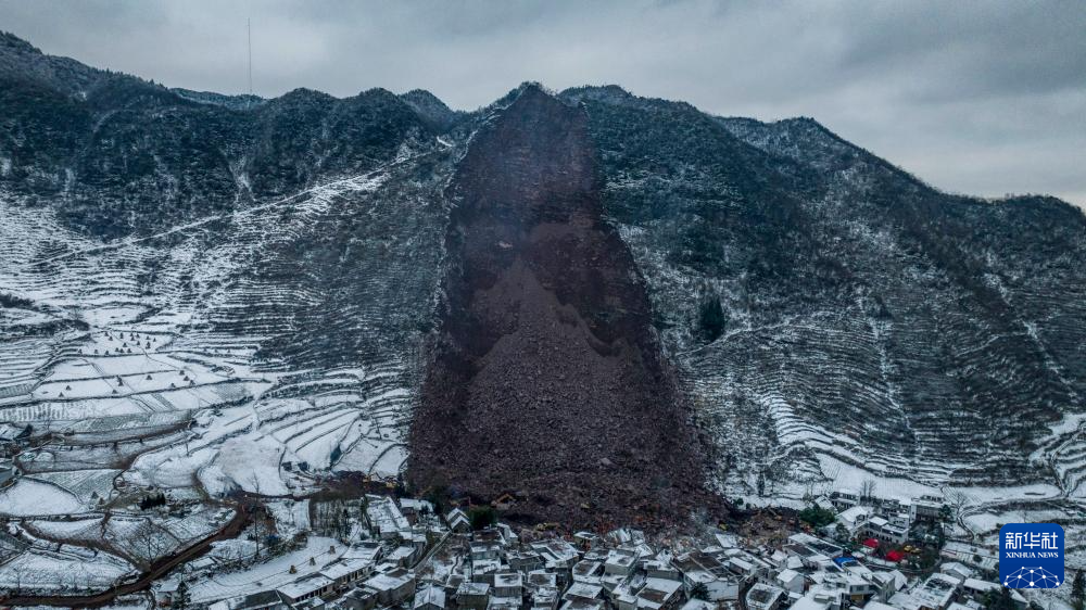 1月22日在镇雄县塘房镇凉水村拍摄的救援现场(无人机照片)。 当日6时许,云南昭通市镇雄县塘房镇凉水村发生山体滑坡,造成18户房屋被掩埋、47人失联。解放军和武警部队官兵、民兵闻令而动,迅速投入抢险救援,全力保护人民群众生命财产安全。 新华社记者 胡超 摄pagebreak