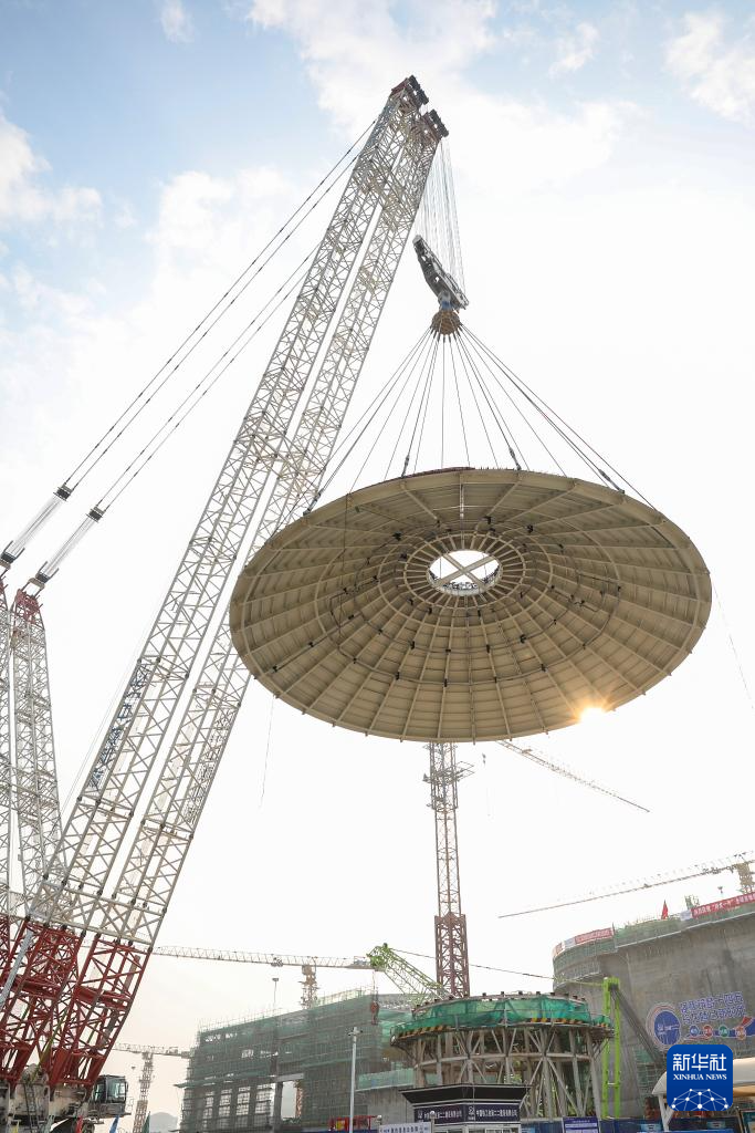 “玲龙一号”全球首堆外穹顶吊装完成