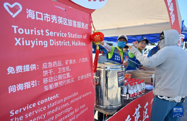 这是海口市新海港附近的一处旅客服务点(2月17日摄)。 新华社记者 郭程 摄