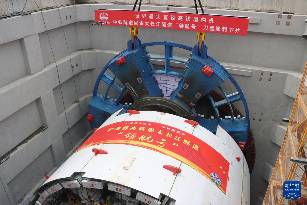 当日,我国自主研制的高铁盾构机“领航号”在上海市崇明区成功合体,后续将投入沪渝蓉高铁崇太长江隧道的建设。“领航号”盾构机今年1月底在杭州下线,刀盘直径15.4米,搭载智能掘进、智能拼装、超前地质预报等系统,可助力实现隧道智能建造。