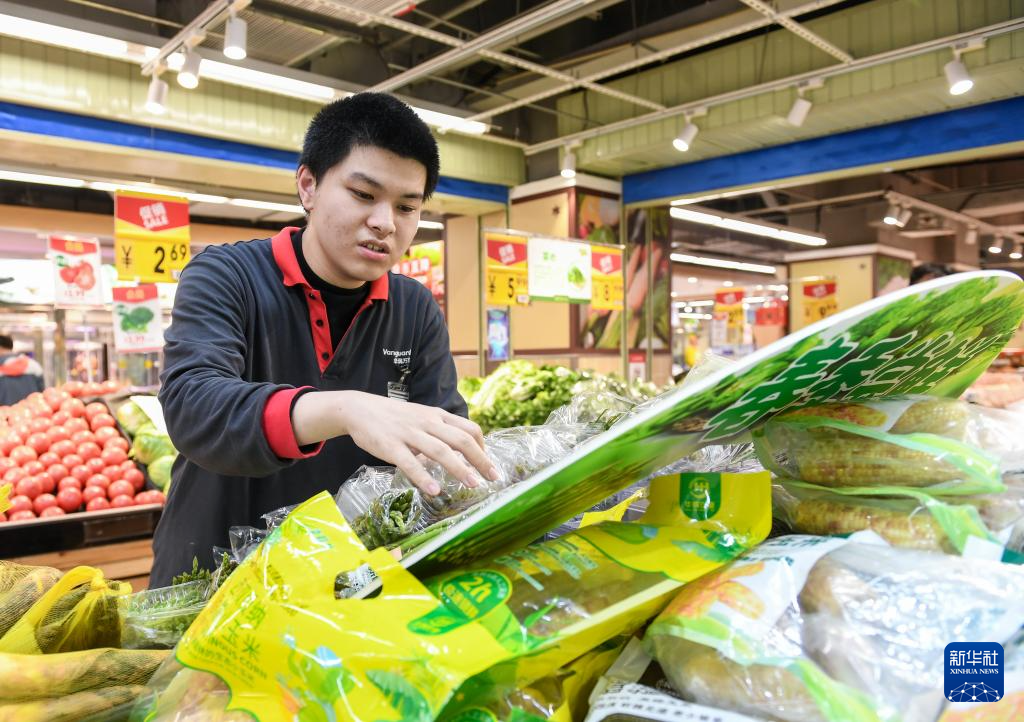 3月22日,在深圳华润万家超市翠竹店,“心青年”冉钰龙在生鲜区摆放整理蔬菜。19岁的冉钰龙2023年9月入职华润万家深圳翠竹店,每个月上班96小时,主要工作内容是整理生鲜果蔬区的货品和检查产品保质期。他从小就在这家超市买东西,长大后成了这里的员工。