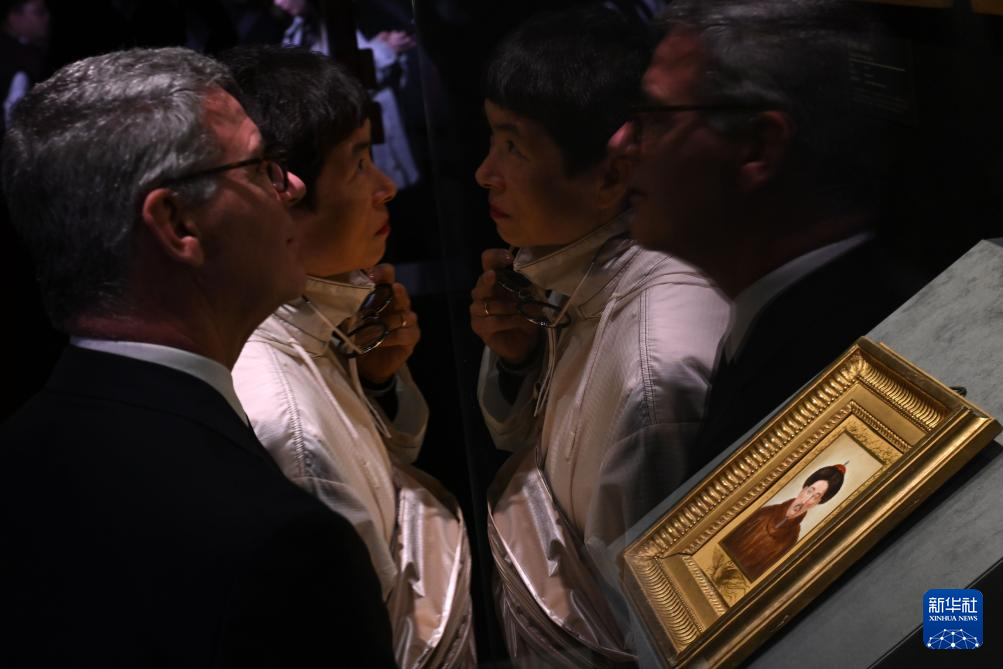 4月1日,观众参观凡尔赛宫收藏的乾隆皇帝像瓷版画。