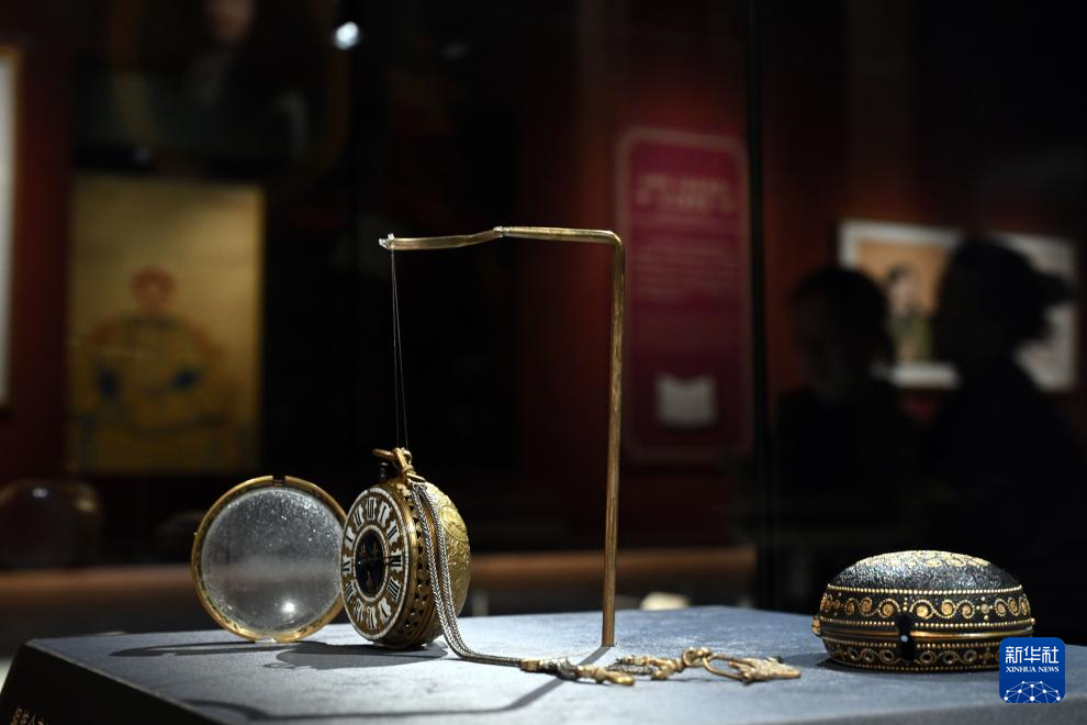 这是展出的故宫博物院藏铜镀金壳开光人物像怀表(4月1日摄)。