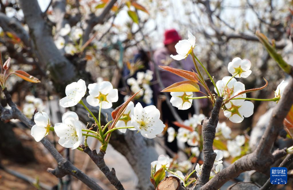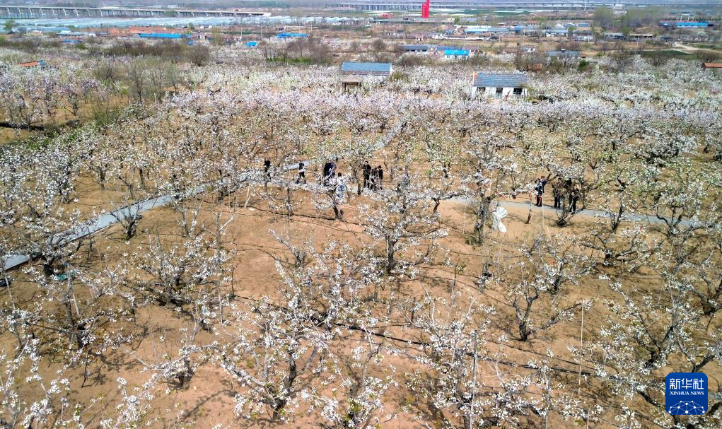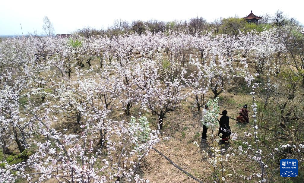 近日,山东潍坊昌邑市饮马镇的博陆山古梨园内梨花盛开,吸引众多游客前来赏花游览。博陆山古梨园占地2000余亩,园内有树龄超过300年的梨树5000多棵。