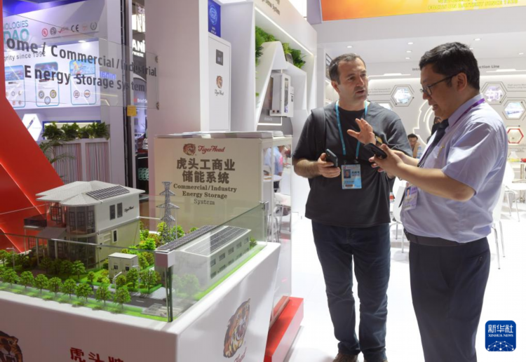 4月15日,客商在广交会展馆内参观、了解储能系统。