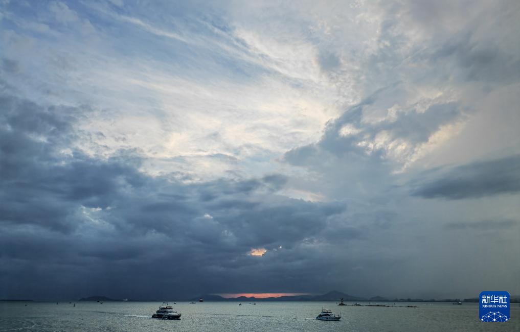 傍晚时分的南海和云霞景色(5月16日摄)。