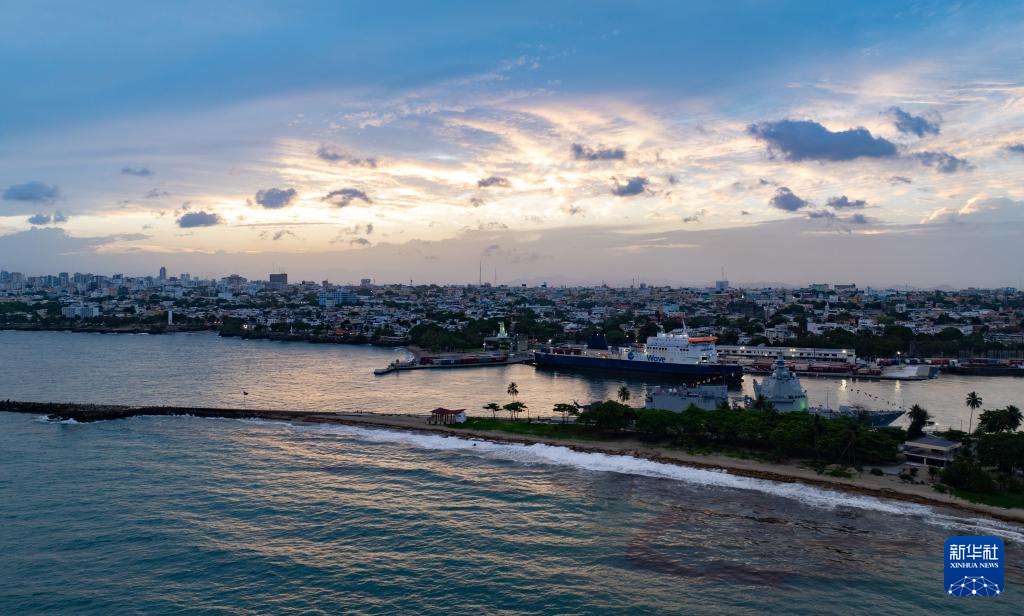 这是5月21日在多米尼加首都圣多明各的奥萨马河入海口附近拍摄的海岸线(无人机照片)。