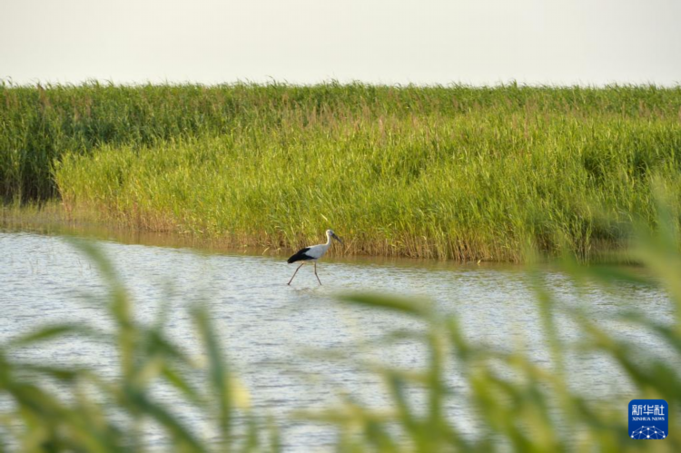 这是6月25日在山东东营拍摄的黄河三角洲国家级自然保护区的东方白鹳。