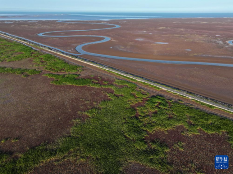 这是6月25日在山东东营拍摄的黄河三角洲国家级自然保护区湿地(无人机照片)。