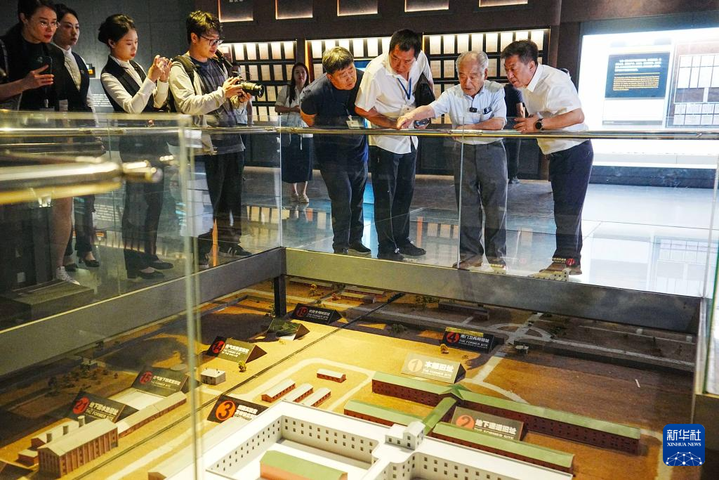 8月13日,清水英男(右二)一行在侵华日军第七三一部队罪证陈列馆内参观。