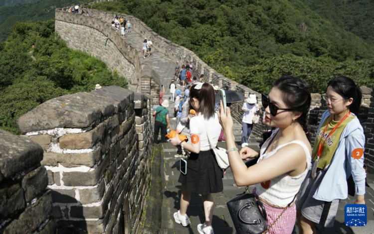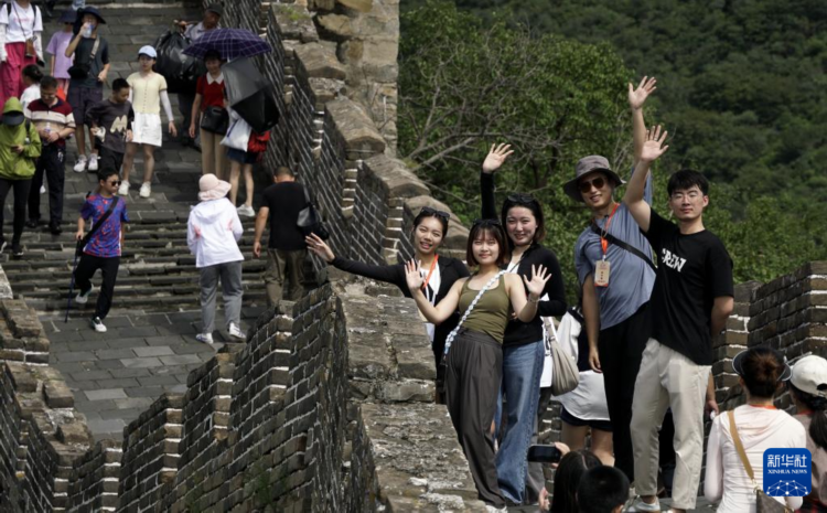 8月25日,参加第三十届海峡两岸大学生新闻营的师生们在北京慕田峪长城参观。