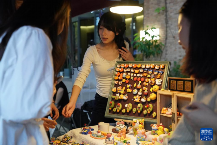 10月17日,一名摊主在陶溪川春秋大集上向游客介绍创意瓷器。