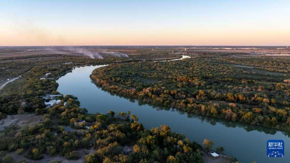 这是12月11日在墨西哥边境城市雷诺萨拍摄的格兰德河墨美边境段(无人机照片)。 新华社记者 李木子 摄