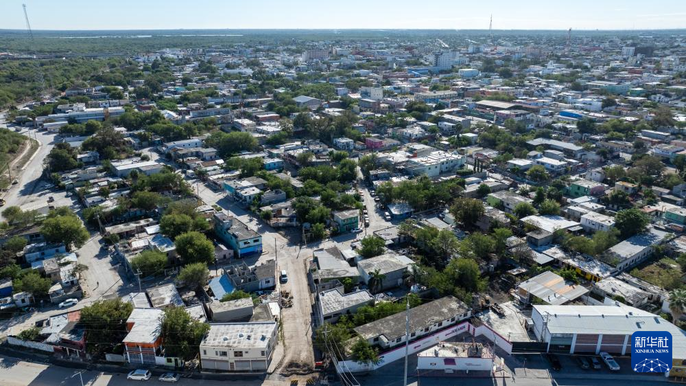 这是12月11日拍摄的墨西哥边境城市雷诺萨一景(无人机照片)。 雷诺萨是墨西哥塔毛利帕斯州的边境城市,位于格兰德河畔,与美国得克萨斯州的麦卡伦隔河相望。 新华社记者 李木子 摄