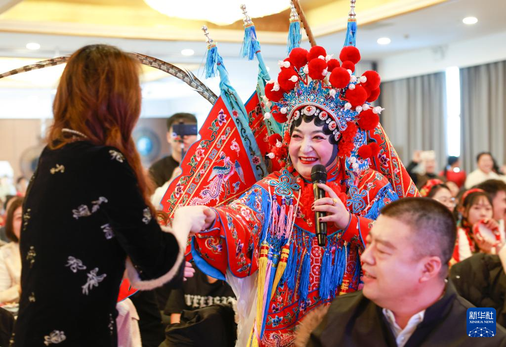 2024年12月31日,乌鲁木齐市水磨沟街道北山社区居民在进行戏曲表演。
