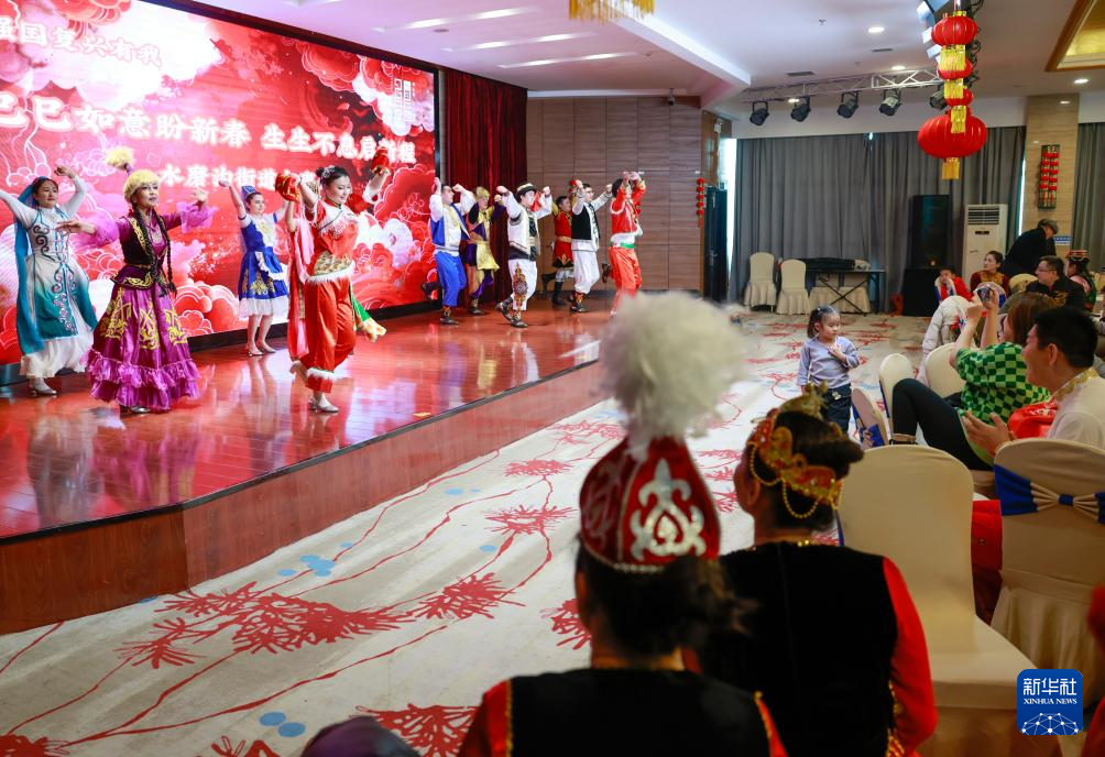 2024年12月31日,乌鲁木齐市水磨沟街道众泰社区居民在表演舞蹈。
