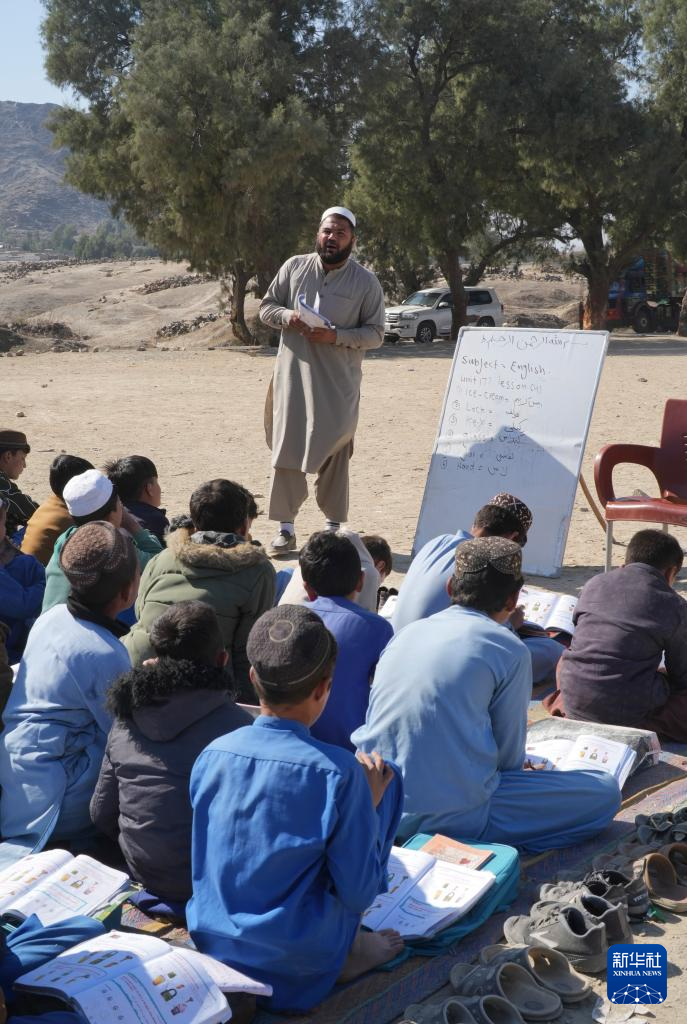 2月12日,孩子们在阿富汗东部楠格哈尔省贾拉拉巴德一处露天学校上英语课。 阿富汗连续40多年的战乱环境,让很多学龄儿童失去了基本的学习条件。近日,在阿富汗东部边境省份楠格哈尔贾拉拉巴德的一条公路边,数百名孩子席地而坐,在没有校舍和桌椅的露天学校上课。 新华社记者 李昂 摄