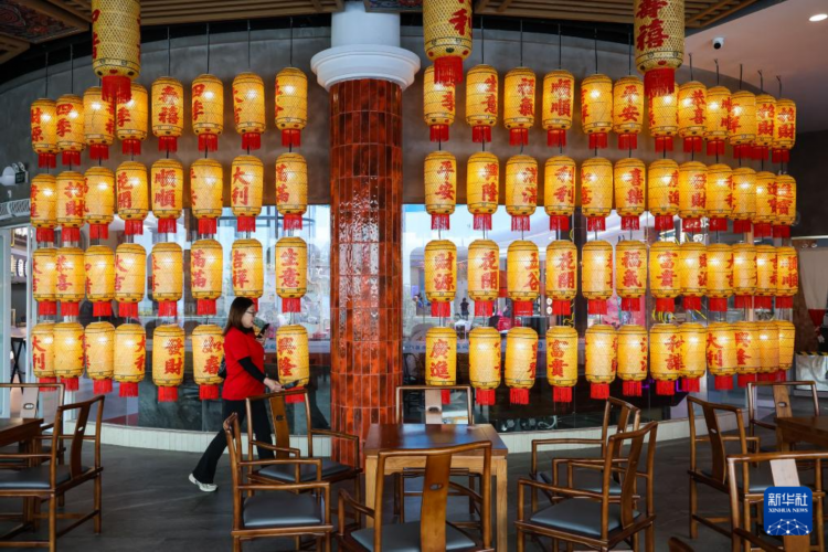 深汕西高速长沙湾服务区一家以潮汕文化为主题装修的餐厅(4月2日摄)。