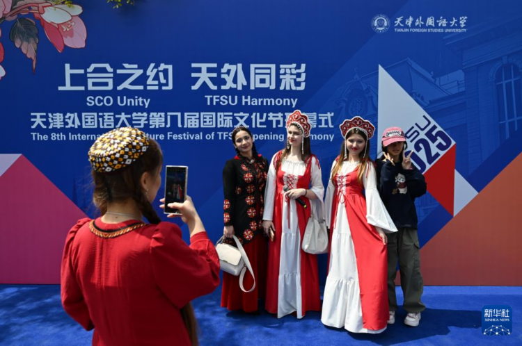 当日是“国际中文日”,以“上合之约 天外同彩”为主题的天津外国语大学第八届国际文化节在天津外国语大学马场道校区开幕,吸引来自泰国、越南、意大利、埃及等60余个国家和地区的300余名外籍师生参与。