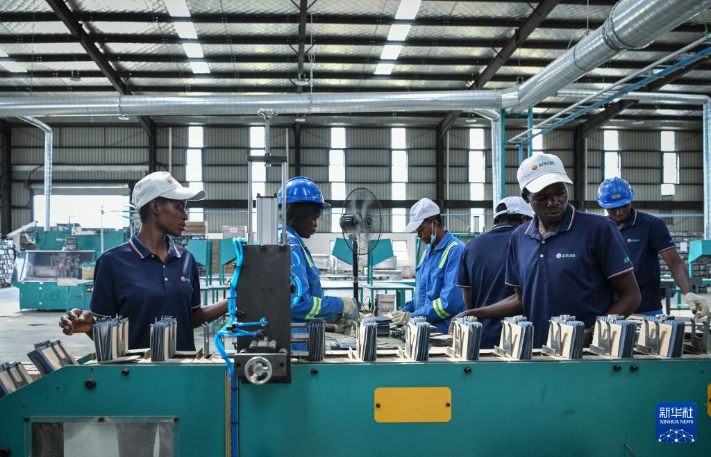 3月26日,在位于赞比亚中央省奇邦博市的赞比亚江西经济合作区,工人们在生产车间工作。新华社记者 韩旭 摄