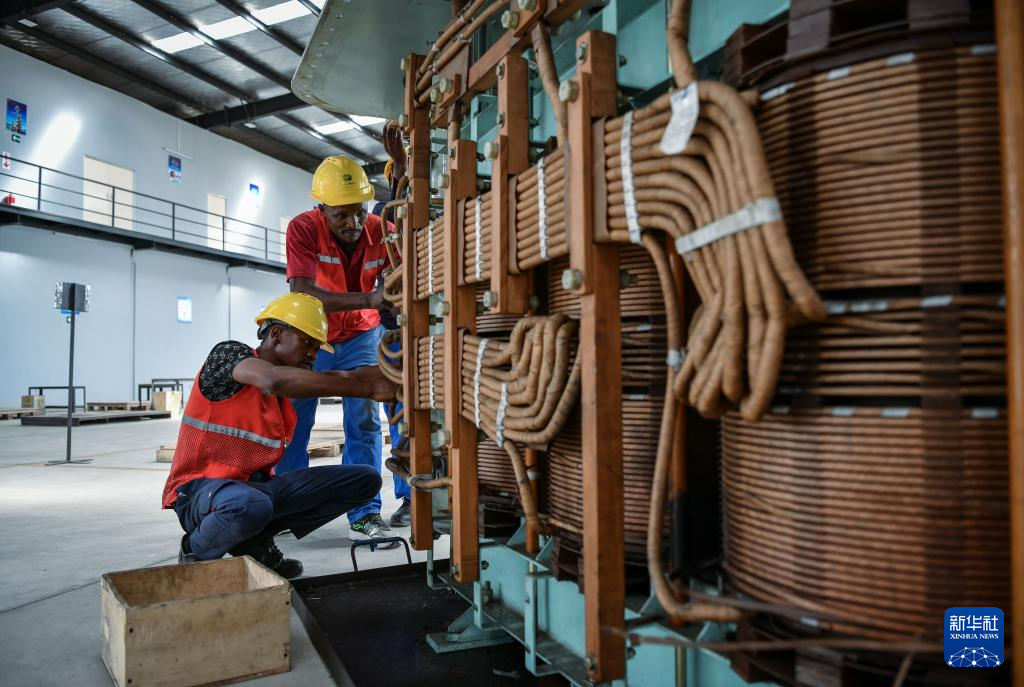 赞特斯电气有限公司是最早进驻合作区的企业之一,主要从事配电变压器的生产、维修、保养检测业务。记者在现场看到,三名当地工人正围在一台故障变压器旁拆解发黑的线缆。生产厂长李衡告诉记者,公司目前雇用近40名当地工人,岗位覆盖技术、生产、行政管理等,已经有员工从学徒成长为技术熟手。